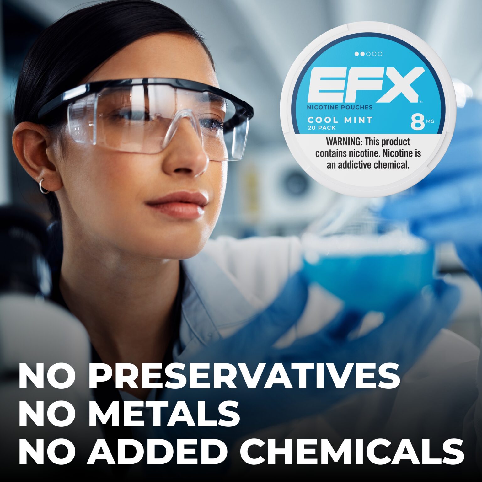 EFX Benefits – Lifestyle Cool Mint Published November 12, 2024 at 4500 × 4500 in EFX Nicotine Pouches ™ Single Tins ← Previous Next →